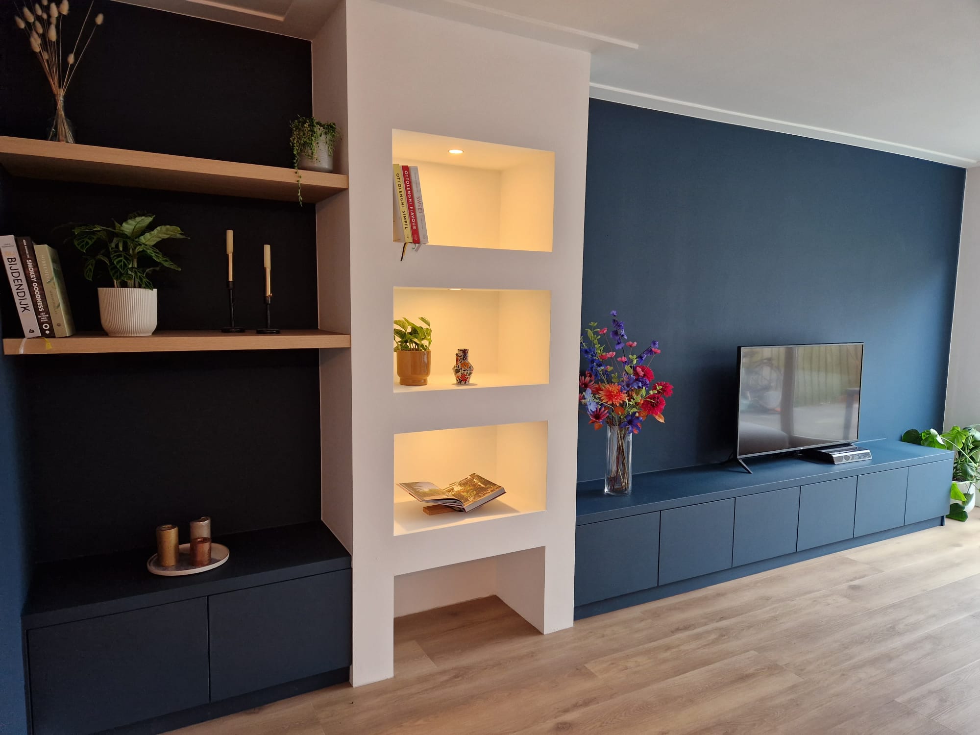 Voor onze nieuwe woning waren wij op zoek naar een mooie inbouw- en wandkast. We hadden zelf duidelijke wensen en ideeën die zowel qua vormgeving als technisch ontwerp verder aangevuld werden door Bert.